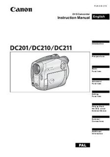 This is a professionally printed and bound black-and-white instruction manual for the Canon DC 211. It contains the full user guide as originally supplied, covering setup, operation, features and safety information.